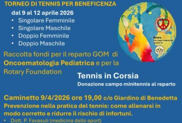 Tennis e solidarietà a Reggio Calabria: al via “Fai anche tu un match point per la vita” Torneo benefico dal 9 al 12 aprile 2026 promosso dal Rotary Club Reggio Calabria Sud Parallelo 38 e dal Circolo Tennis “Rocco Polimeni”. Raccolta fondi per la Rotary Foundation e per l’Oncoematologia Pediatrica del Grande Ospedale Metropolitano (G.O.M.), con patrocinio dell’ospedale