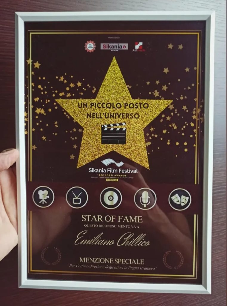 Il cortometraggio “Un Piccolo Posto Nell’Universo” da lui scritto e diretto, è stato premiato al Sikania Film Festival di Misterbianco a Catania, evento importante patrocinato da Rai Sicilia.