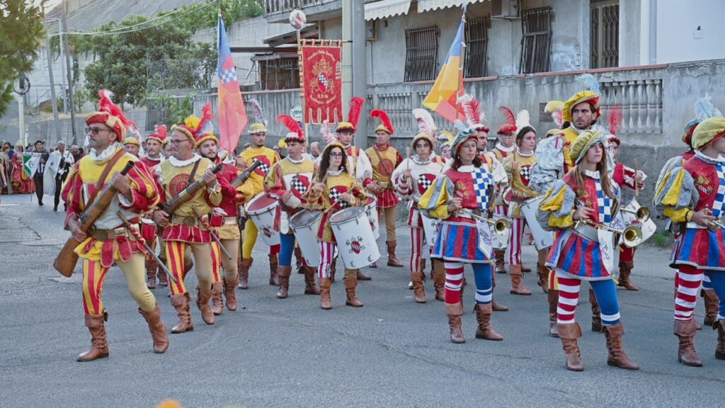 Hanno sfilato i prestigiosi Cavalieri della Bolla Pontificia A.D. 1394 (per la prima volta in Calabria), gli sbandieratori Leoni Reali e Rione Maestri (Catania), la compagnia Militia Fretensis e l’Associazione Culturale Trischine di Taverna (CZ).