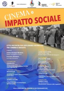 Dal 4 ottobre inizia a San Ferdinando “Cinema e impatto sociale”, una serie di otto incontri a cadenza mensile promossi da DISìO, in partnership con Medma Academy, e con il patrocinio del Comune di San Ferdinando, dell’Accademia di Belle Arti di Reggio Calabria e della Calabria Film Commission. Gli incontri sono curati da Andrea Muratore, regista, e da Francesco Barbalace, sociologo, che di volta in volta dialogheranno con rappresentanti del mondo cinematografico e accademico coinvolgendo il pubblico presente, e in particolare i giovani.