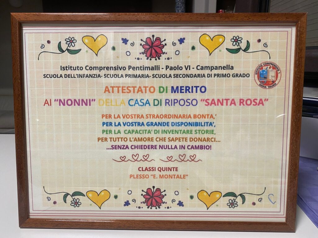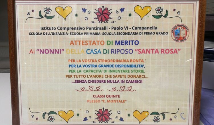 In occasione della Festa dei Nonni, i bambini delle classi quinte A, B, C ed F del plesso Eugenio Montale dell’Istituto Comprensivo Pentimalli, Paolo VI, Campanella di Gioia Tauro hanno vissuto una mattinata all’insegna dell’affetto e della solidarietà. Accompagnati dalla maestra Paola Anastasi, responsabile del plesso e da altri insegnanti ,gli alunni si sono recati presso la casa di residenza per anziani “S.Rosa” con l’obiettivo di rendere omaggio a coloro che rappresentano le radici della nostra comunità.