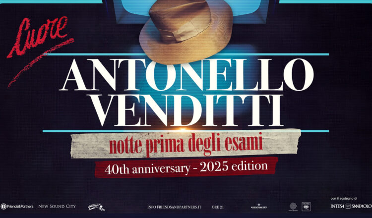 Il “40 anni tour” di Antonello Venditti chiamato “Notte Prima degli Esami 40th Anniversary – 2025 Edition” è iniziato a giugno 2025 per celebrare i 40 anni dell’album “Cuore” e della canzone simbolo “Notte prima degli esami”.