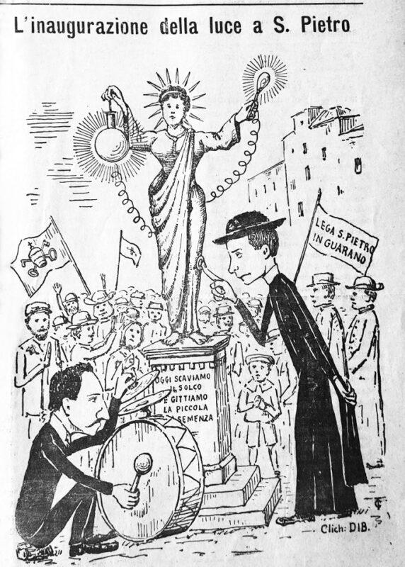 Il 17 novembre 1907 a San Pietro in Guarano (CS) veniva inaugurato il mulino elettrico a opera della Lega del lavoro e della Cassa rurale cattolica di San Pietro in Guarano, due delle organizzazioni nate dal carisma di don Carlo De cardona, che attuò nel cosentino gli insegnamenti della Rerum novarum, l’enciclica sociale di papa Leone XIII. Quella data è importante perché i contadini di De Cardona ruppero con la loro iniziativa il feudalesimo dei baroni, che volevano ancora tenere sotto il loro gioco uomini e cose. Quei “temerari” costruirono un canale idrico di oltre un chilometro e mezzo per far giungere l’acqua nella condotta forzata sul fiume Arente per avere l’energia elettrica; San Pietro ebbe la luce nel 1907, la città di Cosenza solo nel 1914.