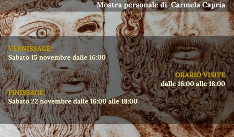 L’esposizione presenterà una serie di tavole in legno che, attraverso la pirografia, antica tecnica di incisione a fuoco, racconteranno al visitatore qualcosa di estremamente profondo, un volto, un paesaggio, una sensazione. In ogni opera nulla è lasciato al caso, perché ogni linea, ogni sfumatura, nasce da un dialogo intimo con la materia; il legno, quindi, non è solo un supporto, ma un elemento vivo che reagisce, risponde, accoglie. Carmela Capria riesce così a unire precisione e sentimento, perché i suoi soggetti sembrano respirare, i loro sguardi comunicano silenziosamente con chi osserva. Le sue tavole non si limitano a raffigurare, ma invitano a sostare, a leggere le venature come tracce di vita, a riconoscere la bellezza essenziale delle cose semplici e del tempo lento.