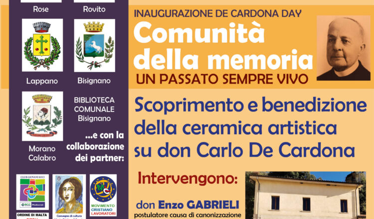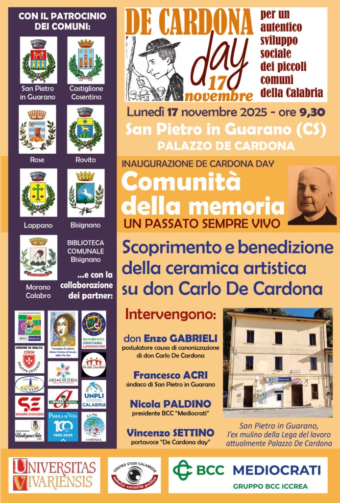 Tutto pronto per il primo De Cardona day, che inizia lunedì 17 novembre 2025 e si conclude venerdì 21; una kermesse culturale itinerante tra scuole, comuni, biblioteche e teatri di alcuni centri del cosentino.
