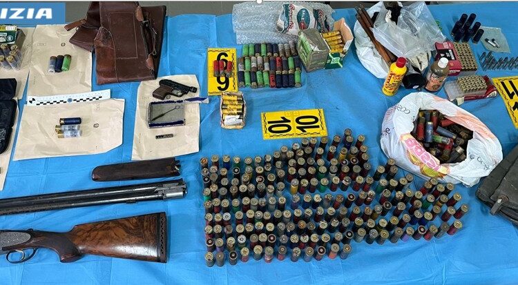 L’attività di ricerca svolta dagli operatori ha consentito di accertare come l’uomo avesse occultato all’interno di alcuni casolari presenti nella campagna di sua proprietà delle armi. Infatti, all’interno di un vano utilizzato come deposito attrezzi è stato rinvenuto un fucile marca Beretta calibro 12 sovrapposto risultato oggetto di furto, una pistola lancia razzi calibro 22 priva di matricola, nonché, diverse cartucce inesplose. All’interno di un capanno dove era custodito un trattore, inoltre, sono state rinvenute ulteriori munizioni, per un totale di 411 cartucce di fucile e 132 cartucce di pistola di vario calibro. Il materiale rinvenuto, comprensivo di foderi per fucile e strumenti di pulizia delle armi, è stato opportunamente repertato e sottoposto a sequestro.