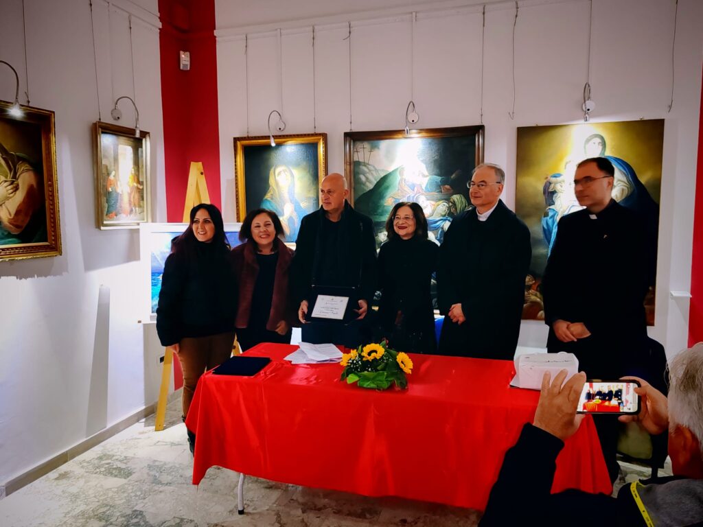 “Tutti gli artisti sono persone speciali – ha dichiarato a seguire Paolo Martino –. Nei secoli la chiesa ha valorizzato ed ha accompagnato l’arte. Il museo diocesano è impegnato nella valorizzazione dell’arte contemporanea”. LO stesso ha annunciato che sabato è stato sottoscritto un accordo con i 12 musei diocesani, per poter iniziare un percorso di arte contemporanea, che aiuterà a comprendere i nuovi linguaggi che devono abitare anche nella chiesa. Lo scultore Cosimo Allera, membro della giuria insieme a Nuccio Gambacorta e Martino, dopo aver ringraziato tutti gli artisti che hanno partecipato al concorso, ha rimarcato l’importanza dell’arte che dà luce al territorio, invitando gli artisti a lavorare sempre sinergicamente.