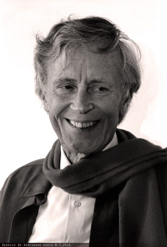 Tutto quanto sopra riflette considerazioni sul presente, ovvero sull’istantaneità del mondo, ridotto alla sua continua costruzione e alle sue incertezze, ora soggetto alla crisi epistemologica tra il nostro passato alfabetico e nostro presente digitale. Regna il caos e c’è il pericolo reale che, per sfuggirgli, la cultura globale e il “nuovo ordine sociale” debbano compiere un salto brutale dalla democrazia alla datacrazia. Tuttavia, de Kerckhove ha anche insistito sul fatto che, fondamentalmente, gli algoritmi non sono in competizione con le lettere dell’alfabeto. Al contrario, entrambi rappresentano la tecnicizzazione delle due principali strategie cognitive dell’intelligenza umana. La prima, che diamo per scontata, è la relazione simbolica di cui il linguaggio è la manifestazione più evidente. Tutto ha un nome e le relazioni simboliche governano i nostri rapporti con le cose e con gli altri. La seconda, che nella vita viene prima, già nel grembo materno, è il riconoscimento dei modelli. La propriocezione e la percezione graduale della frequenza, del ritmo e degli intervalli dei suoni e delle sensazioni da parte del feto sono tra le sue primissime esperienze, il suo primo modo di riconoscere e comprendere. Grazie alla tecnologia digitale, il riconoscimento dei modelli incontra ora le relazioni simboliche sulla rete e produce un’intelligenza artificiale generativa. Grazie a questo incontro provvidenziale, le due strategie cognitive si moltiplicano a vicenda. Un futuro già in atto può essere previsto dalla crescita fenomenale dell’intelligenza media globale, che non solo beneficia della collaborazione delle scoperte, delle invenzioni, dell’immaginazione e delle organizzazioni degli esseri umani più attenti, ma anche dell’autoregolazione di un potere che passerà ancora una volta dalla forza bruta all’intelligenza.