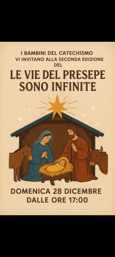 Dopo il successo dello scorso anno, le catechiste e i bambini hanno organizzato la seconda edizione dell’evento, dove ogni famiglia rappresenterà la natività , creando un vero e proprio presepe itinerante.