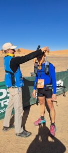 Una gara che ha registrato 200 partecipanti provenienti da tutto il mondo, che Enzo ha intrapreso insieme a due compagni di avventura, Giovanni Cavalieri e Fabrizio Veneziani, dal 9 al 14 gennaio. Un’esperienza già vissuta nel marzo del 2009 solcando 100 chilometri nel cuore del Sahara tunisino. “I miei amici – afferma – a luglio mi hanno proposto di provare questa nuova avventura. La proposta mi è piaciuta da subito perché cercavo il mio personale riscatto dopo la malattia oncologica iniziata nel 2022”. I tre si sono posizionati a metà classifica, 66esimi, con 26 ore di cammino continuativo e solo 4 ore di pausa. “Ho incominciato ad allenarmi a giorni alterni – dichiara Enzo –, iniziando prima con pochi chilometri per arrivare fino ad un allenamento di 8 ore continuative, giorno e notte, così da abituare il mio corpo alle basse temperature del Sahara durante la notte e a confrontarmi con il buio. All’inizio del mio percorso oncologo avevo pensato al cammino di Santiago, che rimane il mio prossimo obiettivo, perché questo genere di gare che non necessitano solo sforzo fisico, ma anche tanta forza mentale e determinazione, mi piacciono molto”.