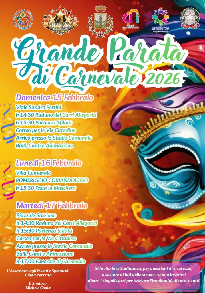 Sarà un Carnevale ricco, coinvolgente e sentito, capace di unire generazioni diverse sotto il segno della festa e della tradizione. Cinquefrondi è pronta a vestirsi di allegria!