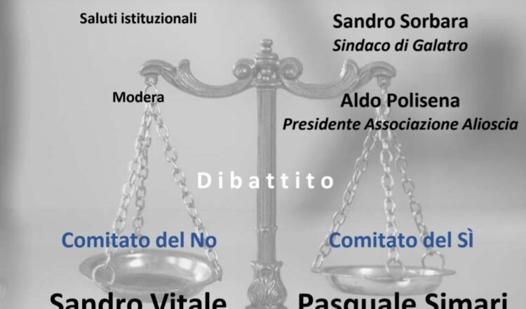 Dopo i saluti istituzionali del sindaco di Galatro Sandro Sorbara; interverranno Sandro Vitale Presidente AMPA venticinque aprile (Comitato del NO) e Pasquale Simari Comitato cittadini per il SI.