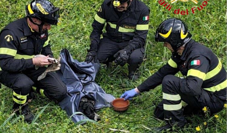 I Vigili del Fuoco, dopo aver creato un percorso per raggiungere l’animale, lo hanno trasportato fino alla strada e consegnato a un veterinario per le necessarie cure.