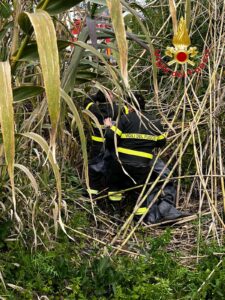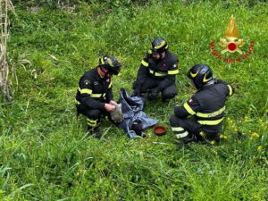 I Vigili del Fuoco, dopo aver creato un percorso per raggiungere l’animale, lo hanno trasportato fino alla strada e consegnato a un veterinario per le necessarie cure.