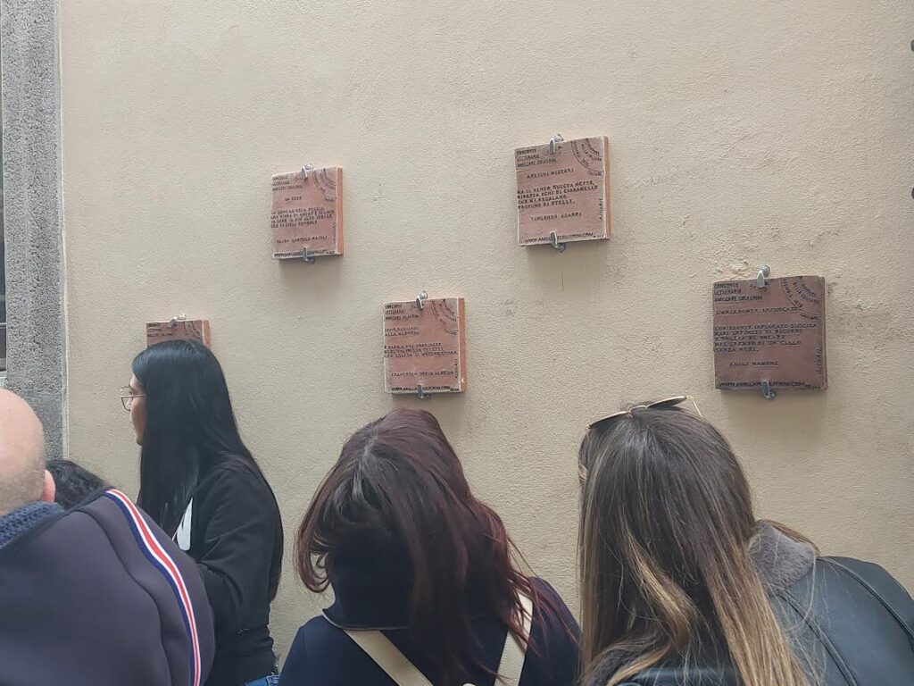 L’installazione permanente lungo il muro esterno della biblioteca Renda, che consiste nella apposizione di 30 mattonelle recanti versi di autori taurianovesi di ieri e di oggi, è stata inaugurata sottolineando i meriti degli organizzatori del Premio internazionale Amilcare Solferini – prestigioso concorso che si tiene in Piemonte – i quali hanno curato la realizzazione tanto del Percorso quanto della Stele che impreziosisce l’area dell’immobile.