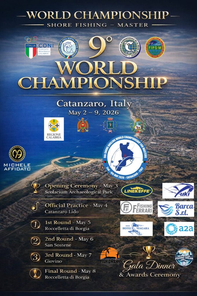 CATANZARO – È ufficiale: la Calabria si prepara a vestire i panni di protagonista assoluta dello sport internazionale. Dal 2 al 9 maggio 2026, il litorale ionico sarà lo scenario del 9° Campionato del Mondo di Pesca in Bordo di Mare (Surf Casting) categoria Master. L’evento, assegnato dalla Federazione Internazionale FIPS-M e coordinato dalla FIPSAS (Federazione Italiana Pesca Sportiva e Attività Subacquee) sotto l’egida del CONI, vedrà la partecipazione delle più forti delegazioni nazionali provenienti da ogni continente.