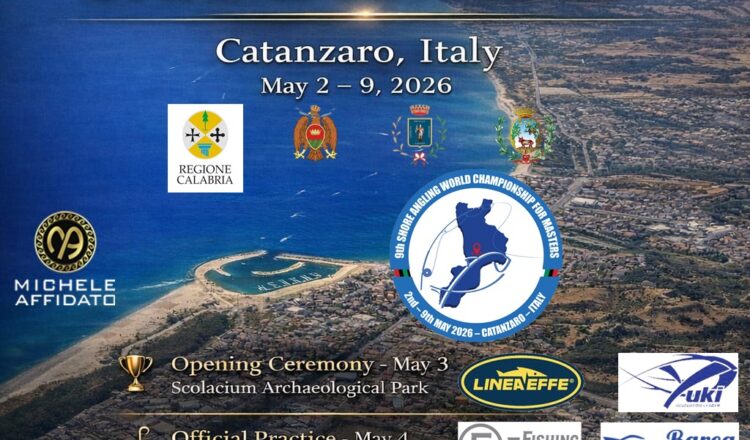 La Calabria al centro del Mondo: a Catanzaro il 9° Campionato Mondiale di Pesca Surf Casting Master ​Dal 2 al 9 maggio 2026, le coste della provincia di Catanzaro ospiteranno l’élite internazionale della pesca sportiva. Cerimonia d’apertura nella cornice storica del Parco Archeologico Scolacium