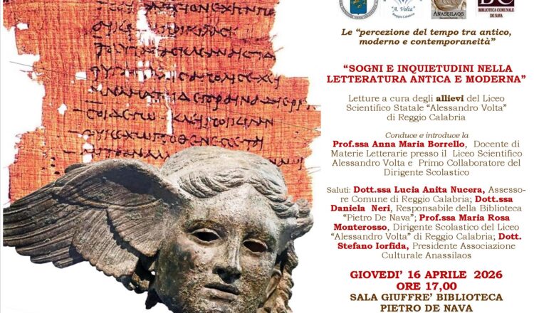 “Sogni e inquietudini nella letteratura antica e moderna” è tema guida del terzo degli incontri con i Licei reggini promosso dall’Associazione Culturale Anassilaos congiuntamente con la Biblioteca De Nava. Dopo il Liceo Scientifico “Leonardo da Vinci” e il Liceo Classico Tommaso Campanella, è la volta del Liceo Scientifico “Alessandro Volta” con letture a cura degli allievi dello stesso Istituto. Da conduttrice la Prof.ssa Anna Maria Borrello, Docente di Materie Letterarie presso il Liceo e Primo Collaboratore del Dirigente Scolastico. A portare i saluti Lucia Anita Nucera, Assessore Comune di Reggio Calabria; Daniela Neri, Responsabile della Biblioteca “Pietro De Nava”; Maria Rosa Monterosso, Dirigente Scolastico del Liceo “Alessandro Volta” di Reggio Calabria; Stefano Iorfida, Presidente Associazione Culturale Anassilaos. La letteratura deve sempre prendersi il diritto di generare inquietudine, altrimenti non è letteratura. Da questa inquietudine nasce l’etica dello scrivere. Il pensiero cioè che se si rinuncia a cambiare il mondo si rinuncia alla Scrittura pur scrivendo. L’inquietante della letteratura è che non è perfetta, non è pacificante, non è attuale, ma continua a parlare sempre nel tempo. In qualunque classico immortale queste tre caratteristiche sono assolutamente incontrovertibili. “Non siamo un’Arcadia, la Letteratura è vita” proclamava Francesco De Sanctis cioè la letteratura non è “vita senza inquietudine”, non è un territorio di esercizio passivo, ma attivo; non un luogo di consolazione, ma di crisi. L’inquietudine spesso si accompagna a un senso di attesa, a un profondo desiderio di cambiamento, all’osservazione insoddisfatta della realtà, all’incapacità di vedere le cose per ciò che saranno. Ognuno di noi custodisce in sé, in misura differente, una dose di inquietudine che sprona a rifiutare l’immobilismo e a ricercare altro. A partire dalla letteratura greca l’inquietudine è un tema profondo che attraversa diversi generi, dalla poesia epica alla tragedia, fino alla filosofia, manifestandosi come una tensione esistenziale tra l’uomo, il destino (Ananke), gli dei e la propria interiorità. Non si tratta solo di paura, ma di un disagio profondo, una sospensione e un desiderio insoddisfatto di senso.Nella letteratura romana influenzata da quella greca, l’inquietudine si manifesta come una “malattia” interna, una aegritudo o pathos che porta a una continua insoddisfazione e al desiderio di fuggire da se stessi, tema che prefigura l’ansia esistenziale moderna, la noia, la nausea, lo spleen, il male di vivere.Il taedium vitae è dunque una spinta emotiva e creativa fondamentale, spesso definita come “mancanza di quiete” o assenza di certezza, che agisce come sismografo dei turbamenti esistenziali, specialmente nel Novecento. Il percorso che si propone vuole essere un reading attraverso alcuni, inevitabilmente limitati ed esemplificativi passi tratti dalle letterature di vari tempi e popoli, da Eschilo a Sofocle, da Lucrezio a Seneca, da Dante a Petrarca, da Leopardi a Kafka , da Montale a Edgard Lee Masters , da Pessoa a Montale.