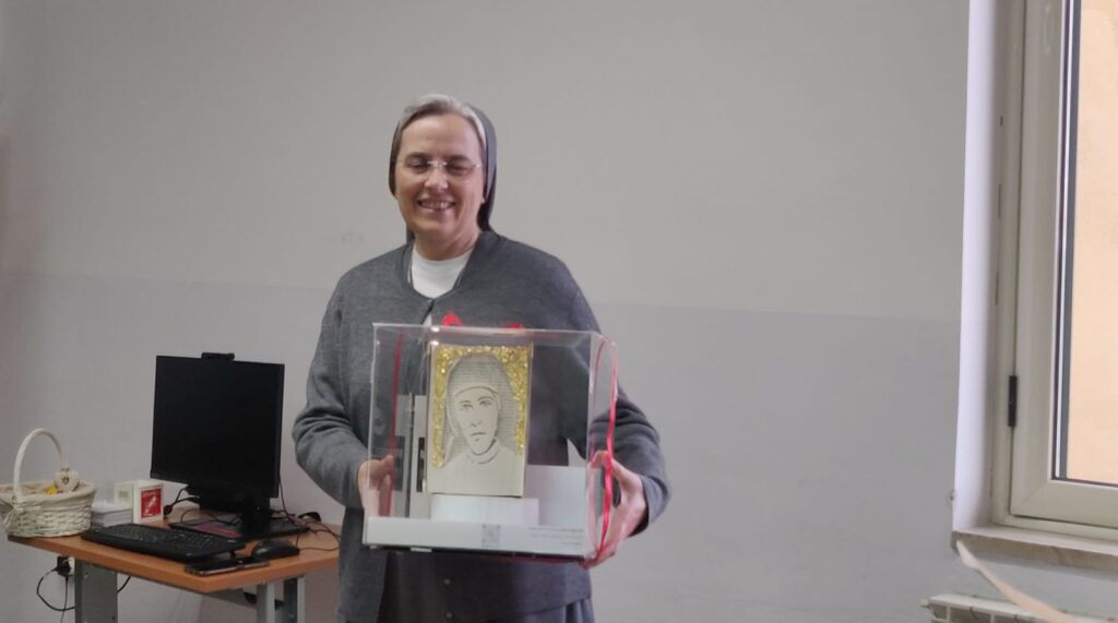 L’artista Maria Morgante ha donato a suor Lidia una sua opera che rappresenta suor Maria Domenica Mazzarello, fondatrice delle Figlie di Maria Ausiliatrice.