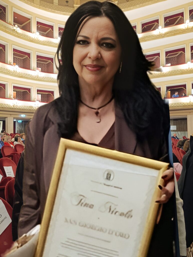 Tra le tante figure prestigiose premiate quest’anno, che si sono distinte nei diversi ambiti professionali l’artista Tina Nicolò, che opera dagli anni ’90 nel territorio Regionale , Nazionale ed estero.