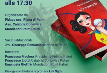 Si terrà venerdì 21 novembre a Palmi, presso la Sala Consiliare “D. A. Cardone” la presentazione del libro di Anna Maria Deodato “Vite Imperfette” edito da Graus Edizioni. L’evento è organizzato dalla Fidapa sez. di Palmi, dall’Associazione Calabria Condivisa e dalla Mondadori Point Palmi. Dopo i saluti del sindaco di Palmi Giuseppe Ranuccio; si succederanno […]