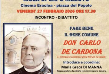 Venerdì 27 febbraio 2026, alle 17.30, il Cinema Eraclea di Isola di Capo Rizzuto (KR) ospiterà l’incontro “Fare bene il bene comune”, che vuole rilanciare, in chiave attuale, l’eredità culturale e sociale di don Carlo De Cardona, figura emblematica del cattolicesimo sociale e interprete calabrese dei principi della Rerum novarum, la prima enciclica sociale, […]
