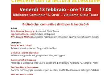 Venerdì 13 febbraio, ore 17.00 – Biblioteca “A. Orso”, Gioia Tauro: Il Presidio Nati per Leggere di Gioia Tauro presenta “TuttInLibro – Crescere con la lettura accessibile”